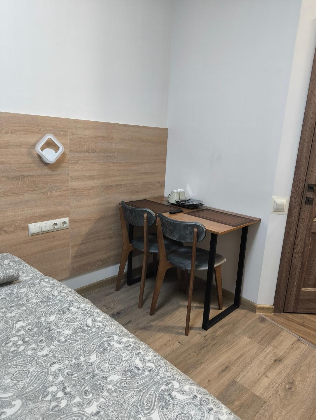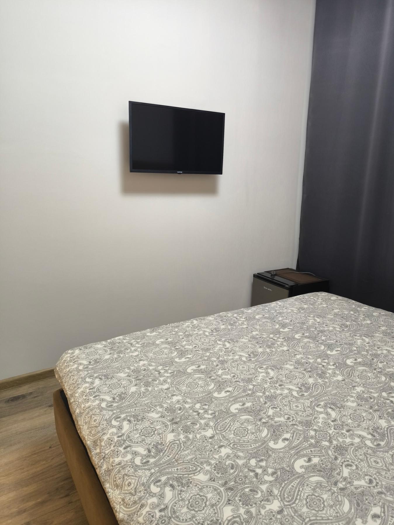 В номере две кровати: Одна большая 180 см кровать или Две кровати 90 см по Вашему выбору Шторы Блэк аут (99% затемнение). Звукоизоляция Потолки 3 метра Душ, умывальник, унитаз, мыло, шампунь и гель. Стол и 2 стула Цифровое ТВ (Яндекс ТВ, Youtube) Wi-fi Чайник с набором посуды Холодильник Тапочки Микроволновка, Вода, Чай, Кофе в общей зоне. Стирка и Глажка у администратора.