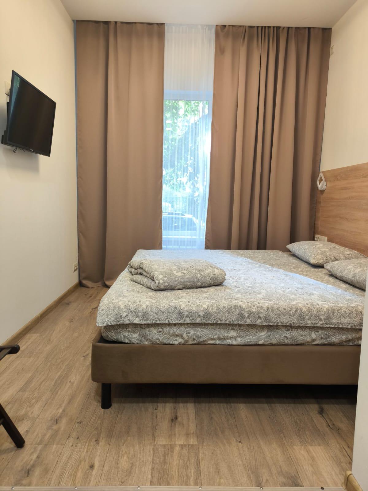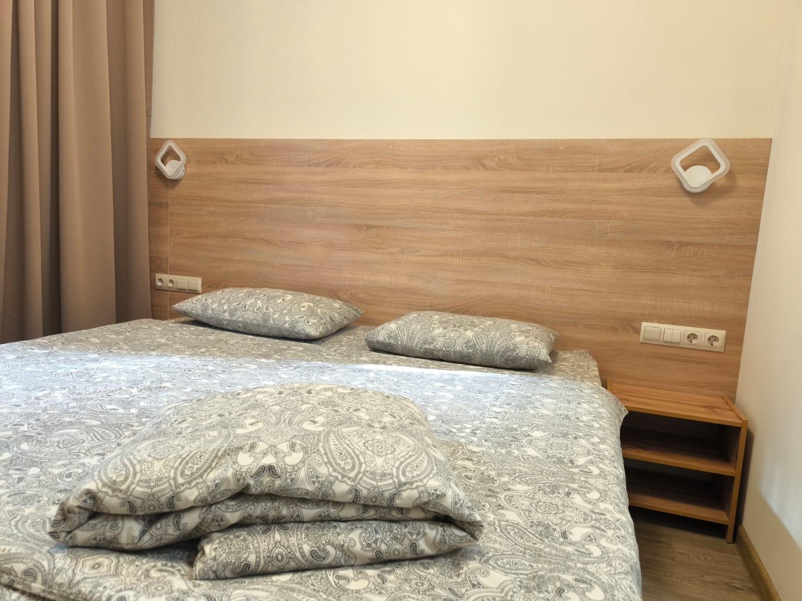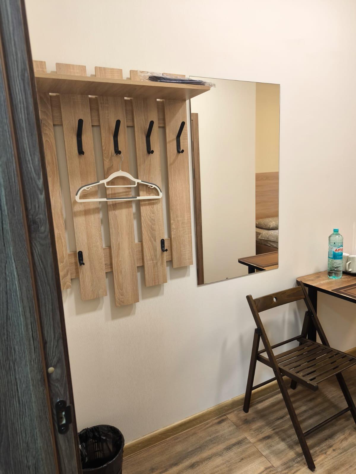 В номере две кровати: Одна большая 180 см кровать или Две кровати 90 см по Вашему выбору Шторы Блэк аут (99% затемнение). Звукоизоляция Потолки 3 метра Душ, умывальник, унитаз, мыло, шампунь и гель. Стол и 2 стула Цифровое ТВ (Яндекс ТВ, Youtube) Wi-fi Чайник с набором посуды Холодильник Тапочки Микроволновка, Вода, Чай, Кофе в общей зоне. Стирка и Глажка у администратора.