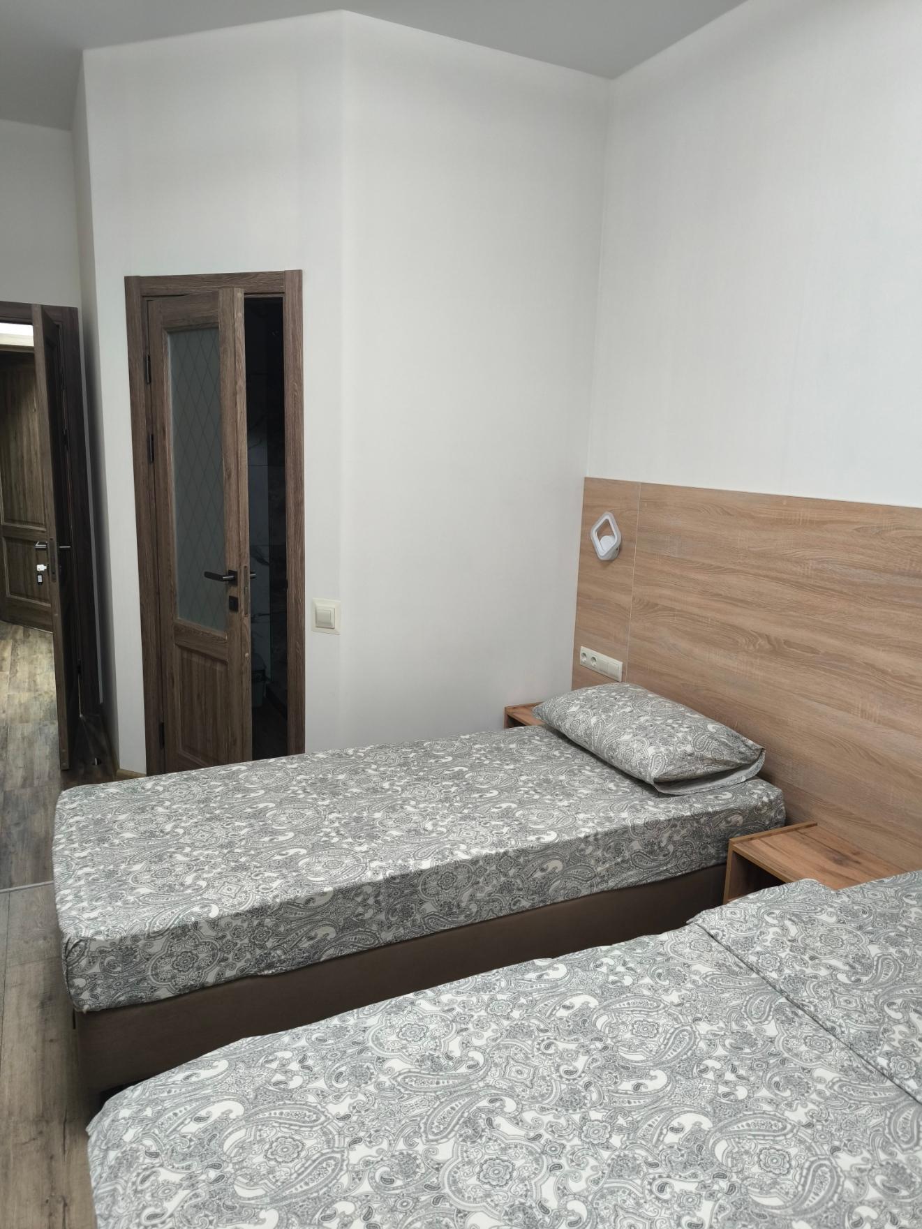 В номере три кровати: двухместная (140см) и две одноместные (80+80см) Рассчитан на семью с двумя детьми Оборудован шторами Блэк аут (99% затемнение). Звукоизоляцией Потолки 3 метра Душ, умывальник, унитаз, мыло, шампунь и гель. Стол и 2 стула Цифровое ТВ (Яндекс ТВ, Youtube) Wi-fi Чайник с набором посуды Холодильник Тапочки Микроволновка, Вода, Чай, Кофе в общей зоне. Стирка и Глажка у администратора.