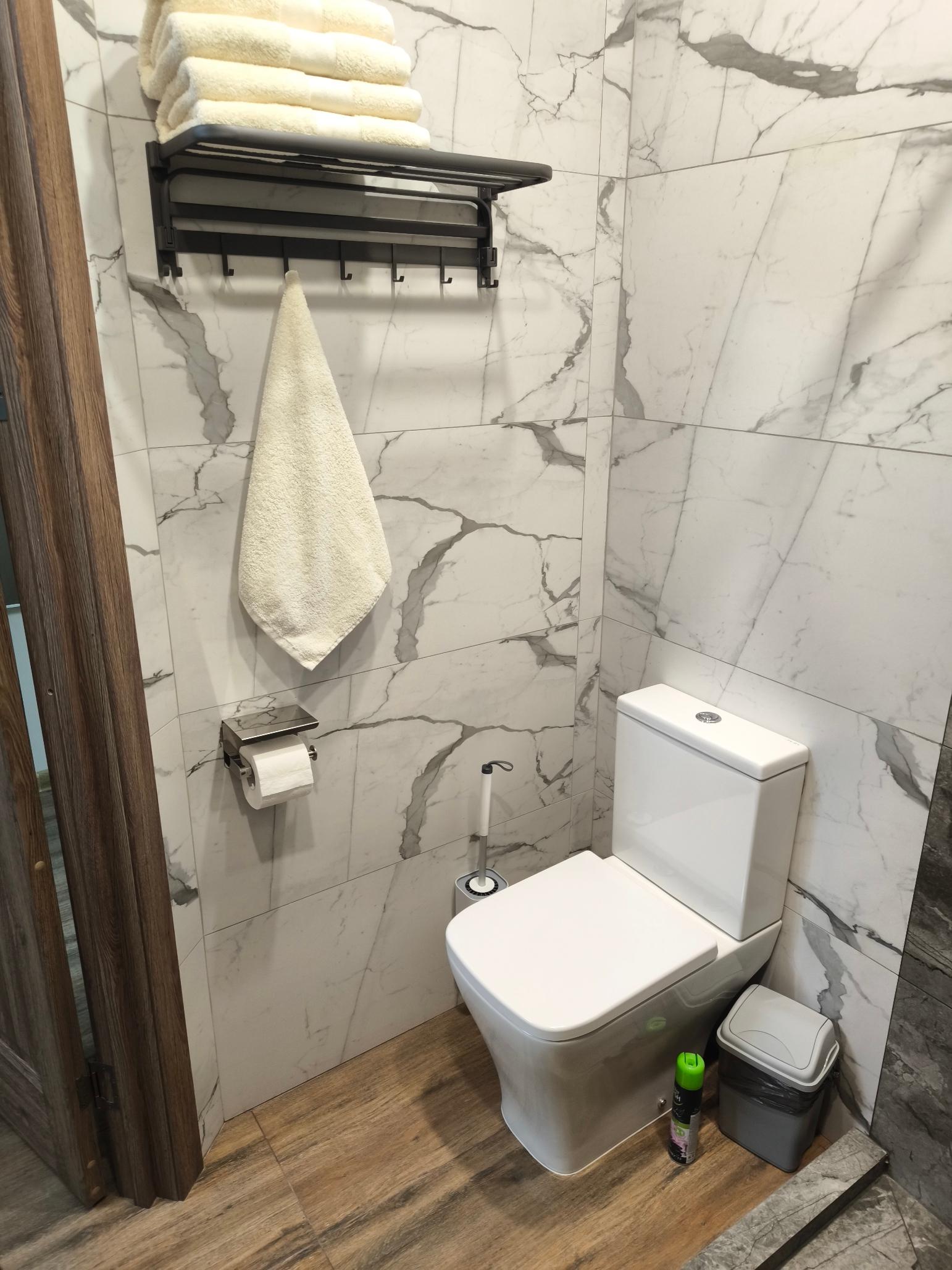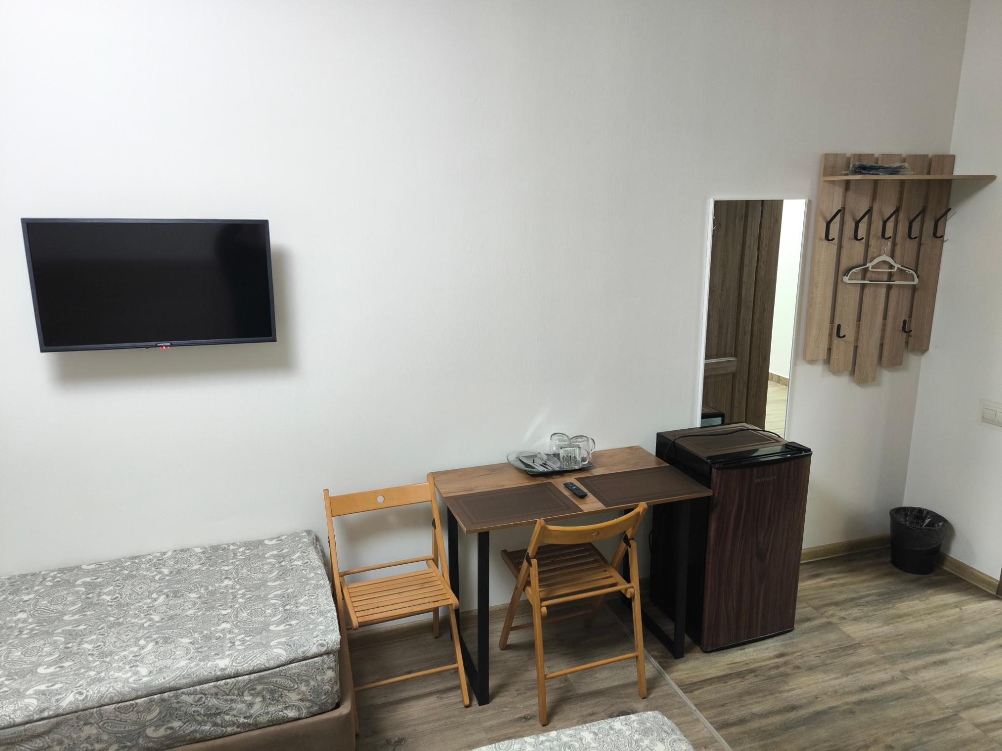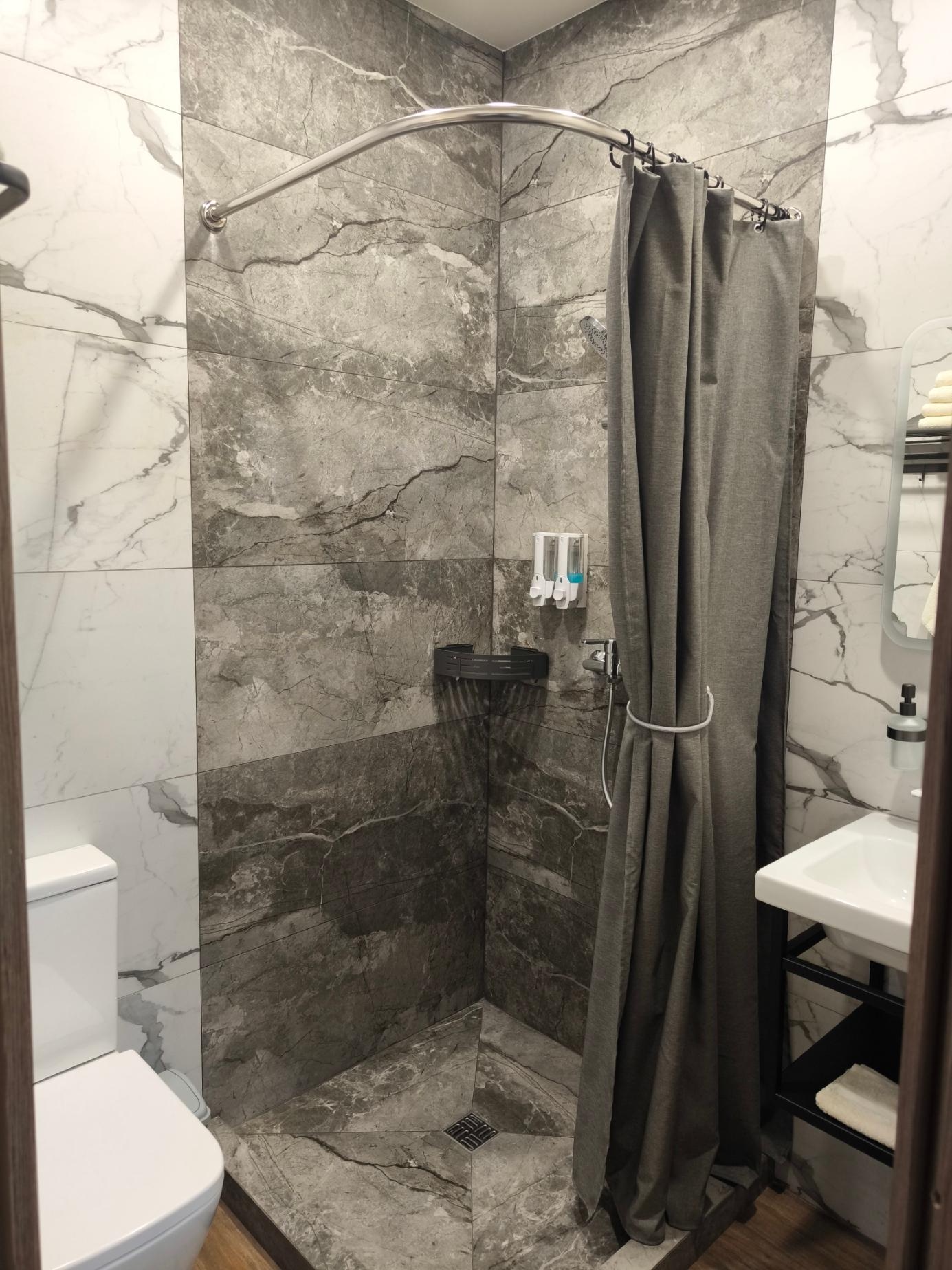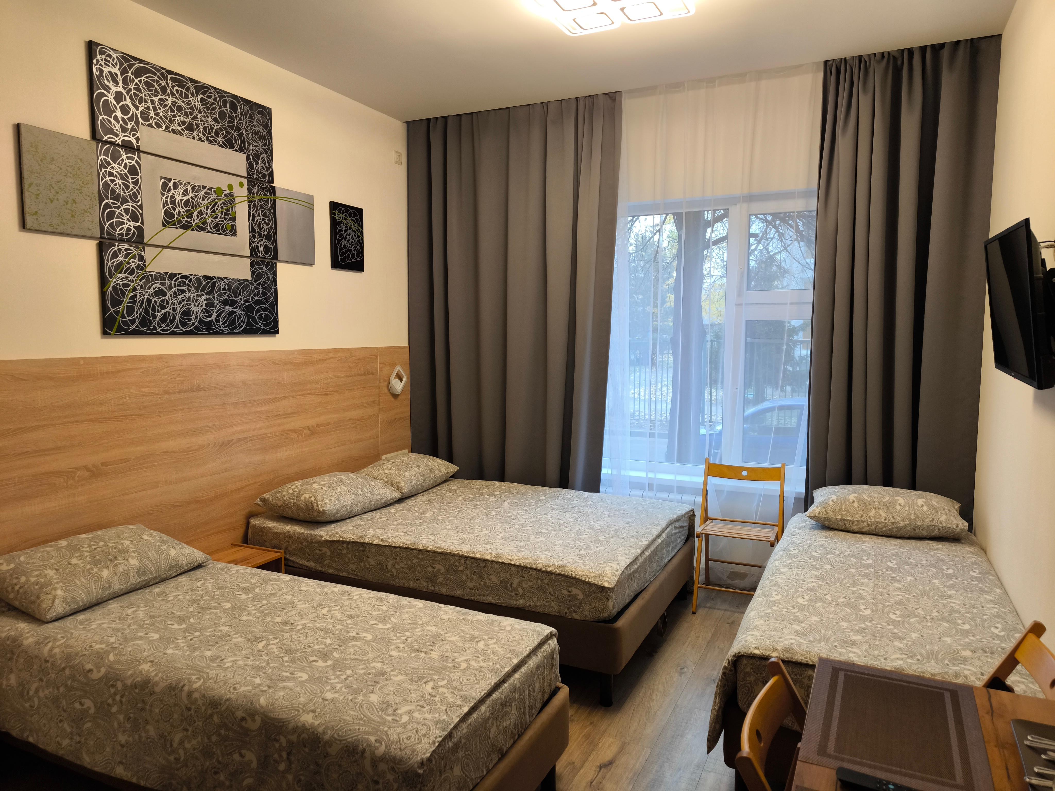 В номере три кровати: двухместная (140см) и две одноместные (80+80см) Рассчитан на семью с двумя детьми Оборудован шторами Блэк аут (99% затемнение). Звукоизоляцией Потолки 3 метра Душ, умывальник, унитаз, мыло, шампунь и гель. Стол и 2 стула Цифровое ТВ (Яндекс ТВ, Youtube) Wi-fi Чайник с набором посуды Холодильник Тапочки Микроволновка, Вода, Чай, Кофе в общей зоне. Стирка и Глажка у администратора.