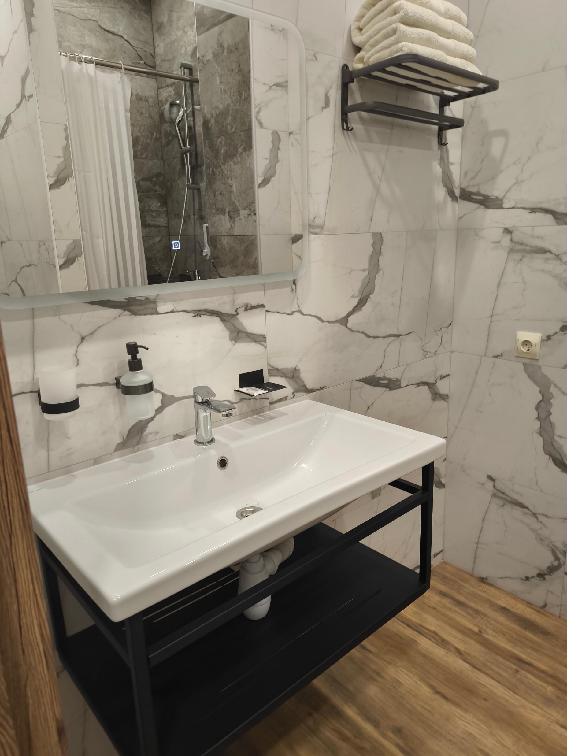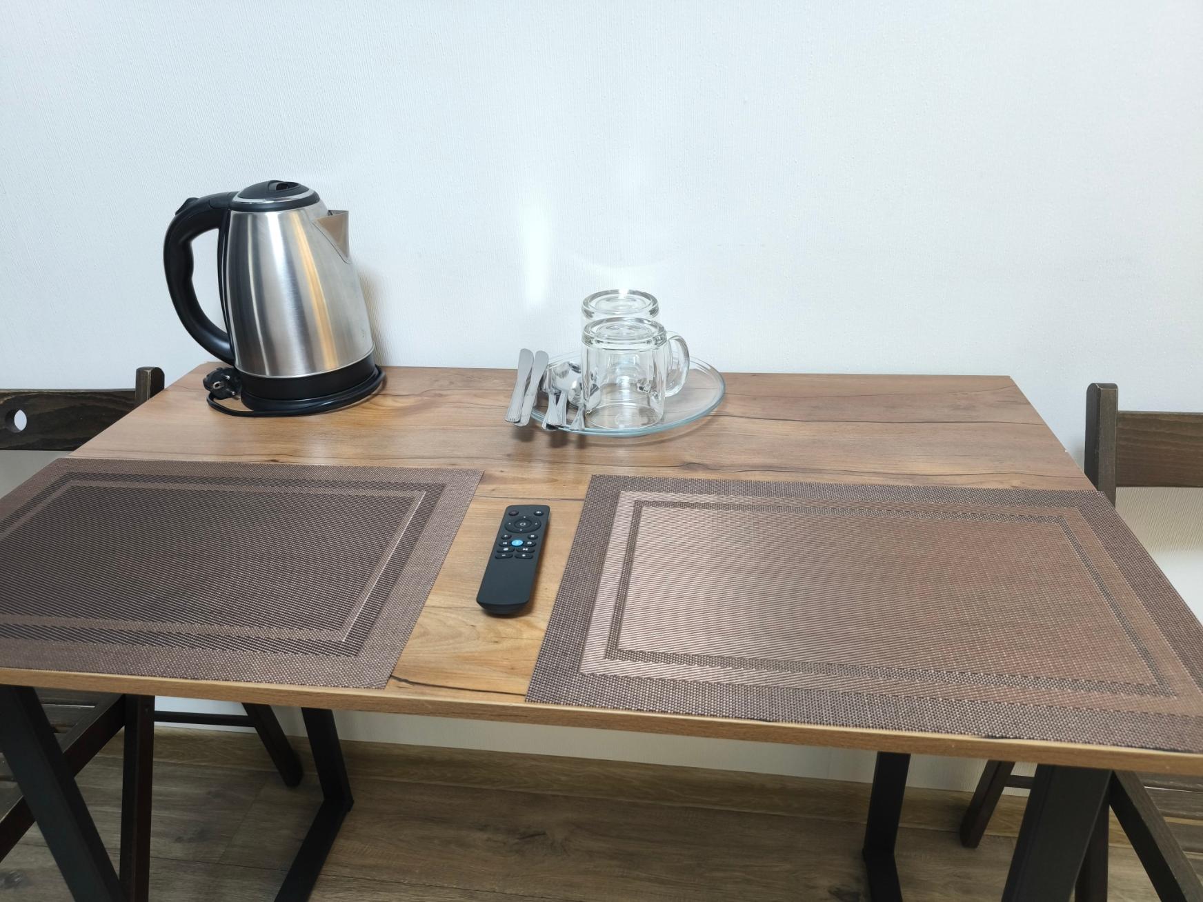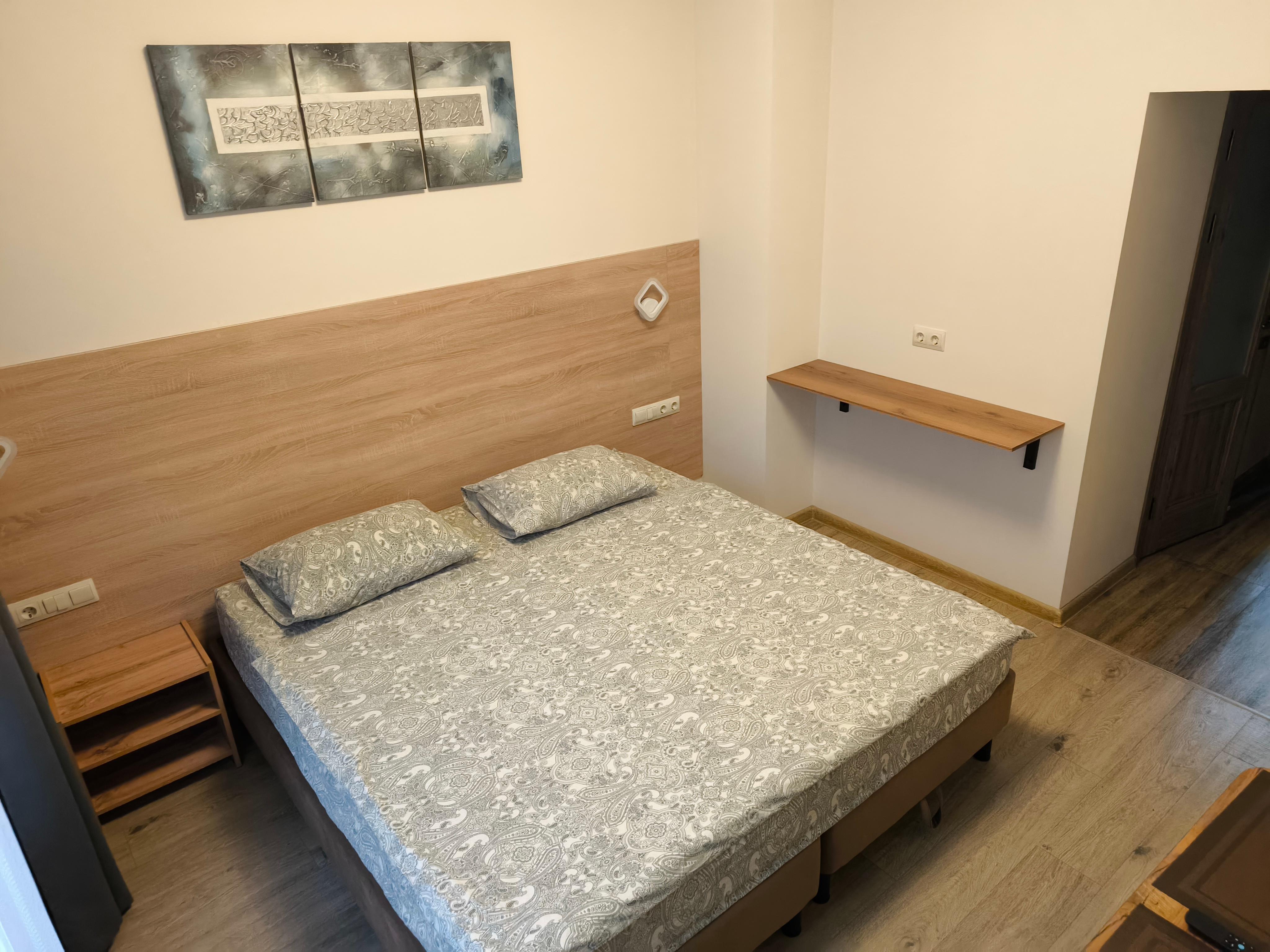 В номере по Вашему выбору: одна большая 180см или две 90-х кровати Шторы Блэк аут (99% затемнение) Звукоизоляция Потолки 3 метра Душ, умывальник, унитаз, мыло, шампунь и гель Стол и 2 стула Цифровое ТВ (Яндекс ТВ, Youtube) Wi-fi Чайник с набором посуды Холодильник Тапочки Микроволновка, Вода, Чай, Кофе в общей зоне Стирка и Глажка у администратора