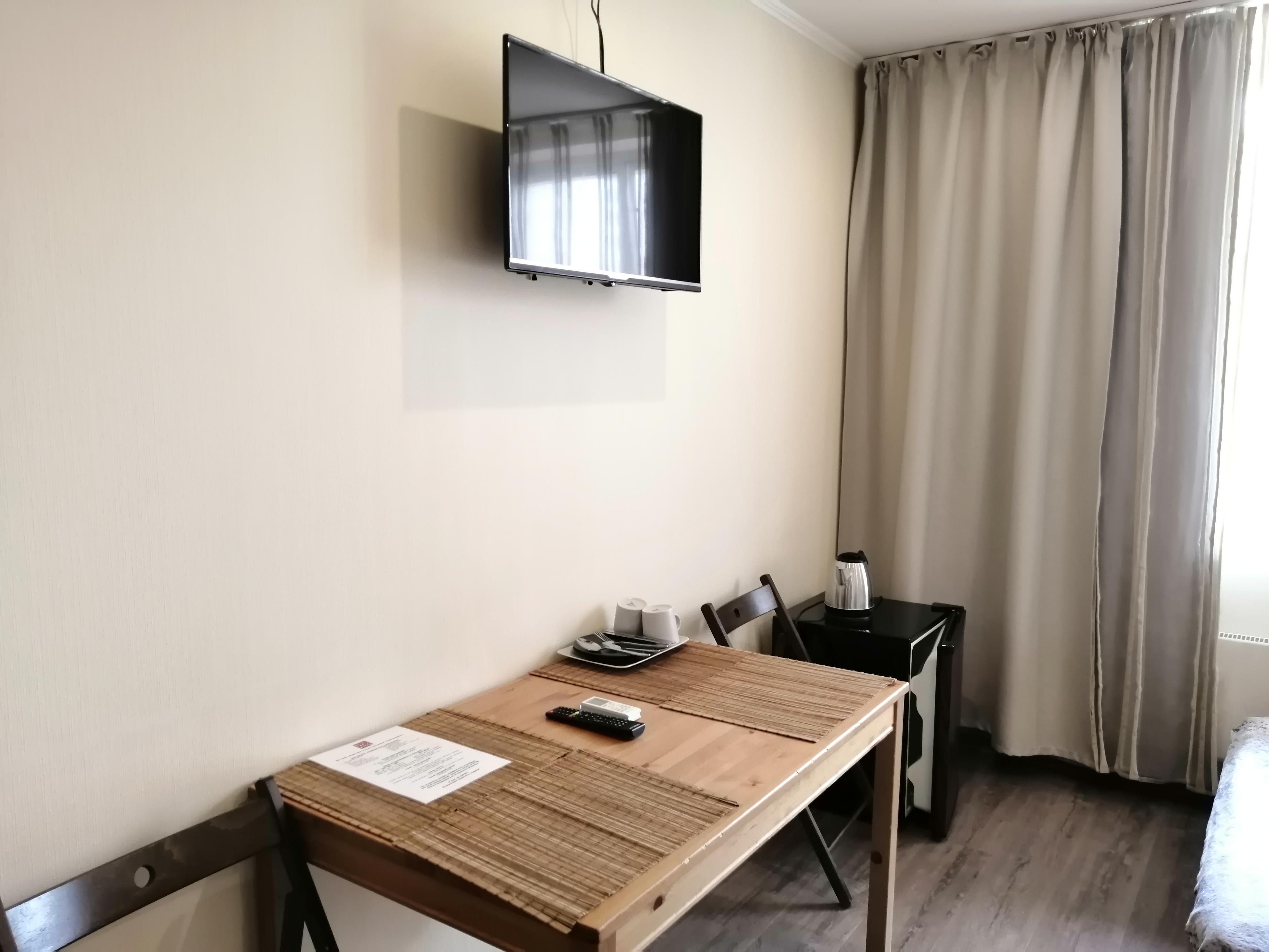 В номере: одна большая кровать 140см Номер со шторами Блэк аут (99% затемнение) Звукоизоляция Кондиционер Душ, умывальник, унитаз, мыло, шампунь и гель Стол и 2 стула Телевизор Wi-fi Чайник с набором посуды Холодильник Тапочки Микроволновка, Вода, Чай, Кофе в общей зоне. Стирка и Глажка у администратора