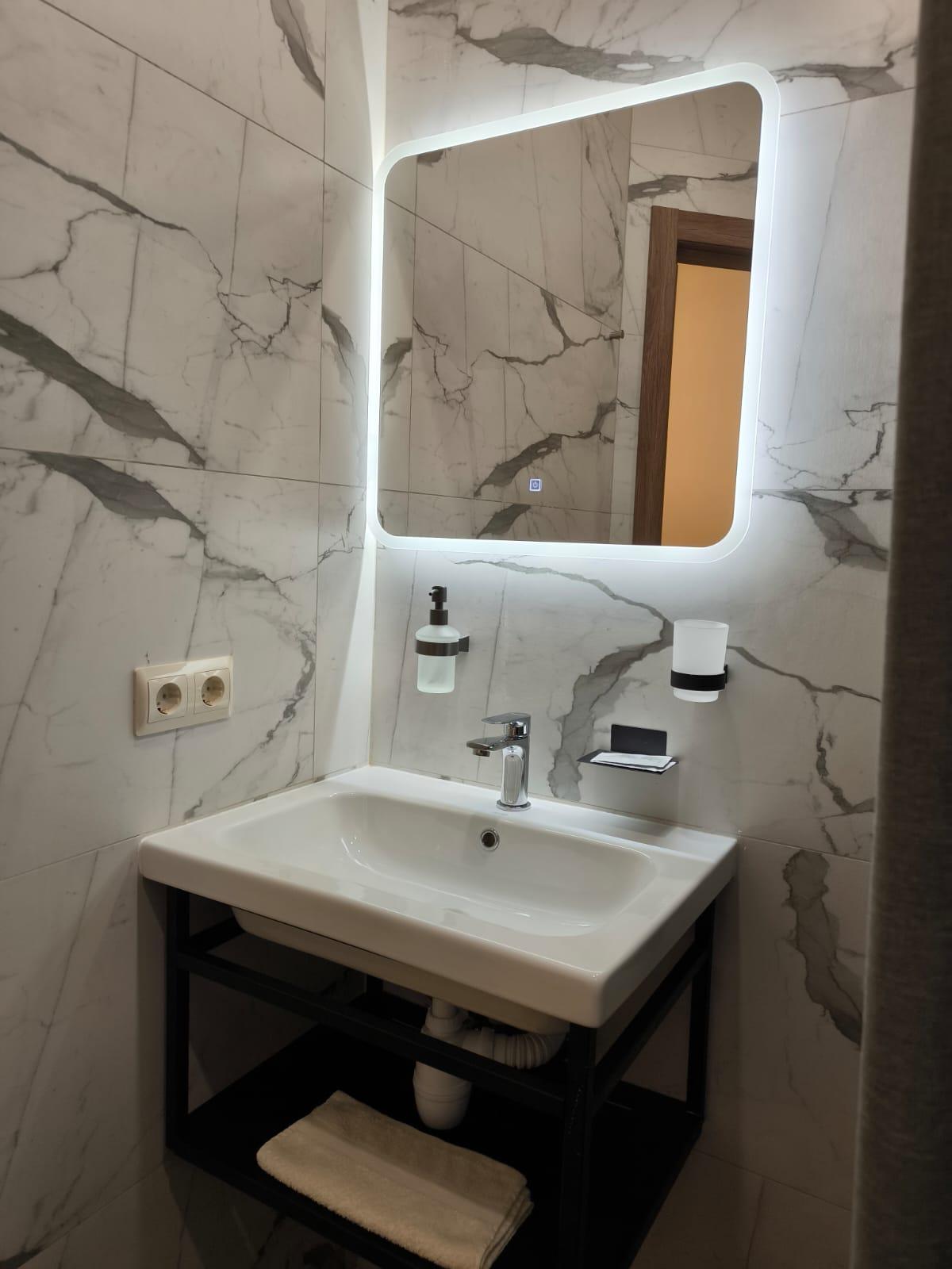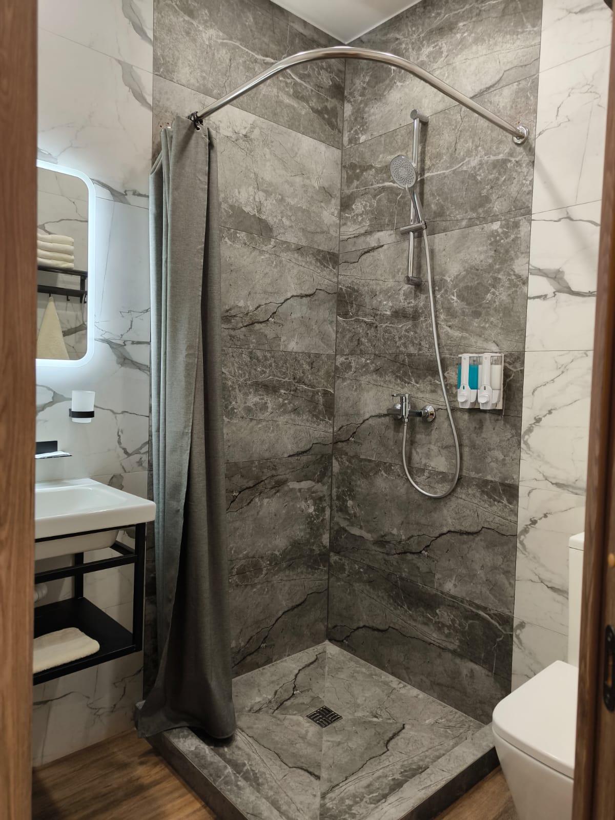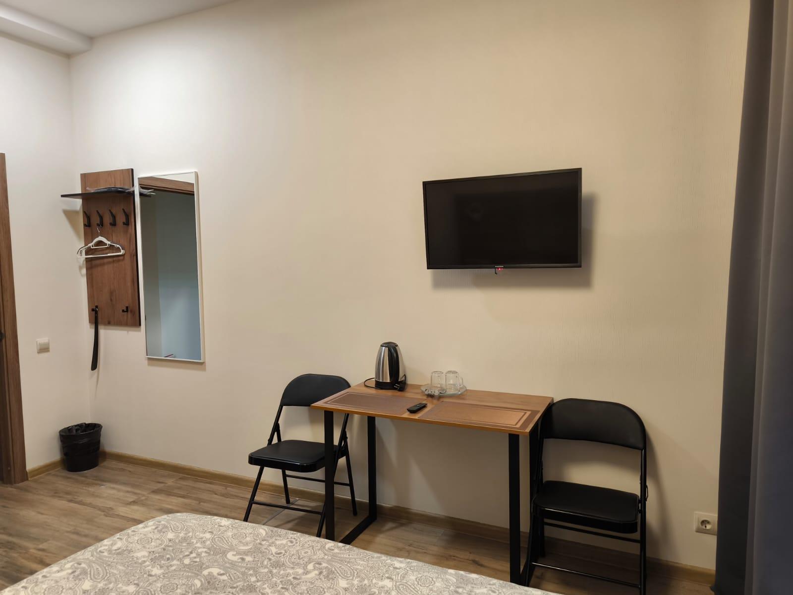 В номере одна большая кровать 160см Шторы Блэк аут (99% затемнение) Звукоизоляция Потолки 3 метра Душ, умывальник, унитаз, мыло, шампунь и гель Стол и 2 стула Цифровое ТВ (Яндекс ТВ, Youtube) Wi-fi Чайник с набором посуды Холодильник Тапочки Микроволновка, Вода, Чай, Кофе в общей зоне Стирка и Глажка у администратора